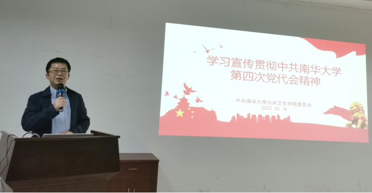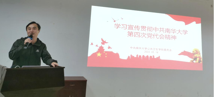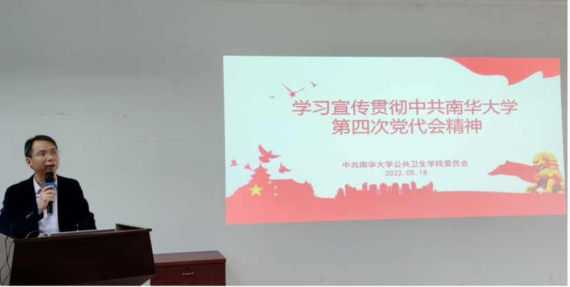 南华大学第四次党代会已于2022年5月6日-8日胜利召开。这次会议是在全面建设社会主义现代化国家进入新发展阶段,学校高水平大学建设进入高质量发展新时期召开的一次十分重要的大会。第四次党代会的胜利召开,吹响了我校“双一流”建设的号角,开启了新时代高水平大学建设的新征程。为深入学习贯彻中共南华大学第四次党代会精神,根据学校统一部署,学院党委安排,best365英国在线体育全体教职工、学生党员于2022年5月18日下午三点在医学楼-101学术报告厅,举行学习贯彻南华大学第四次党代会精神的宣讲会。学校宣讲团成员、校纪委副书记彭仲生、学院党委书记龙鼎新、学校党委副书记王超、副院长张朝晖、副院长杨慧仙出席本次会议。会议由院党委书记龙鼎新主持。
