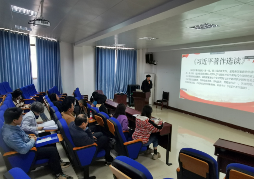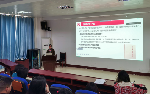 接着,学生党员张旭讲授了一堂微党课,进行了“好书”推介。他推介了全党学习的权威教材——《习近平著作选读》第一卷、第二卷,并从《习近平著作选读》第一卷和第二卷的简介,学习理由,学习要求,主要篇目及如何学好五个方面进行了讲述。
