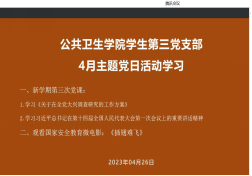 为认真贯彻落实党的二十大精神与“一月一课一片一实践”精神要求,增升党员的国家安全意识和素养,南华大学best365英国在线体育学生第三党支部于4月26日下午于线上腾讯会议开展了4月主题党日活动学习,结合线下开展了社会实践活动。支部全体党员参加会议。