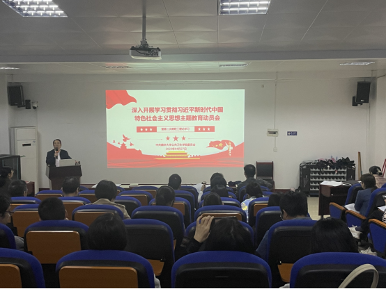 4月27日上午10点,公共卫生学院在3-101报告厅召开学习贯彻习近平新时代中国特色社会主义思想主题教育动员大会暨2023年第二次教职工理论学习。全体教职工参加会议,会议由学院党委书记龙鼎新主持。