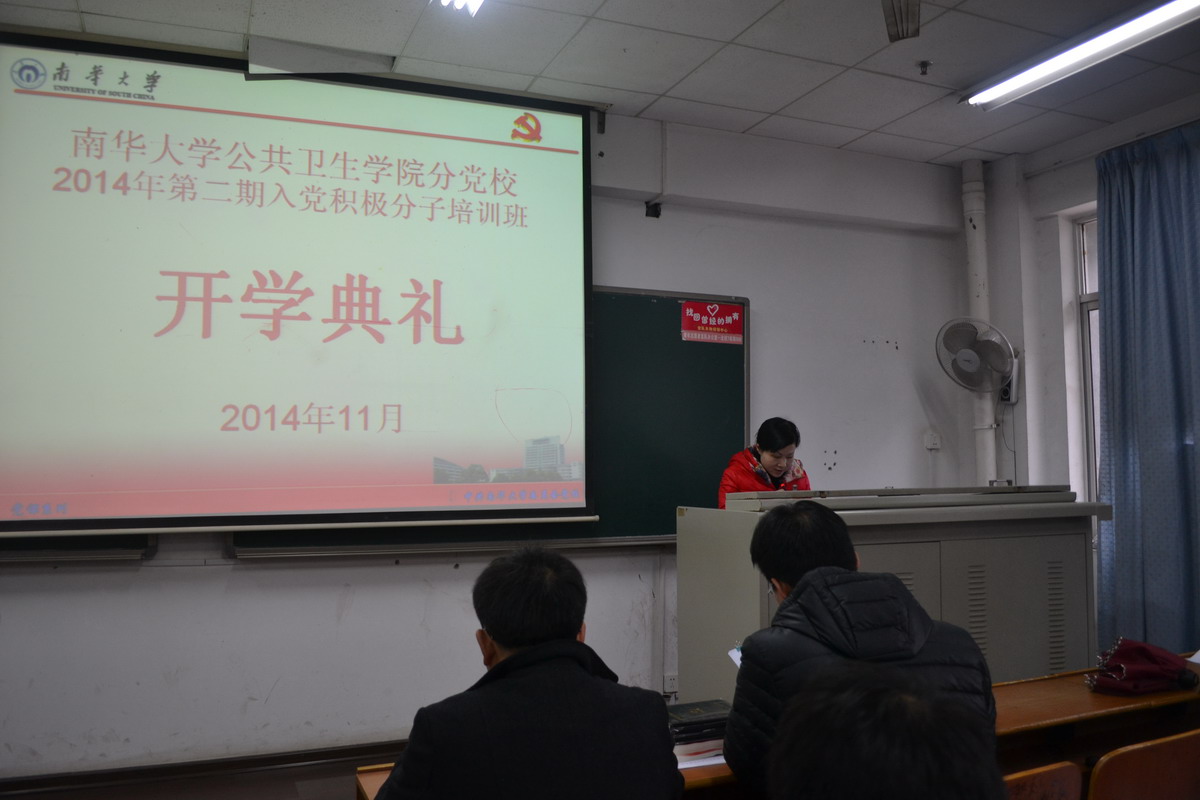11月30日,南华大学best365英国在线体育分党校2014年第二期入党积极分子培训班开学典礼于1教201隆重举行。与会人员有best365英国在线体育党委书记分党校校长谢四平,院党委副书记田生军,院团委书记李佳,院辅导员老师伍卫国,及全体2014年二期入党积极分子。会议由田生军老师主持。