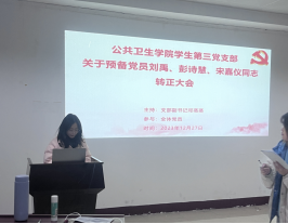 2023年12月27日上午9:00,best365英国在线体育学生第三党支部于三教101召开预备党员转正支部大会、吸收预备党员支部大会暨十二月主题党日活动学习会议顺利进行,支部副书记邓蒸蒸主持会议,全体党员参加会议。
