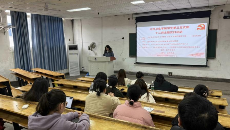 为认真贯彻落实“一月一课一片一实践”活动精神和深入贯彻党的二十大和二十届三中全会精神,2024年12月19日下午3点,best365英国在线体育学生第三党支部在六教301举行了十二月主题党日活动学习会议。会议由支部副书记彭芳君主持,全体在校党员共同参与。