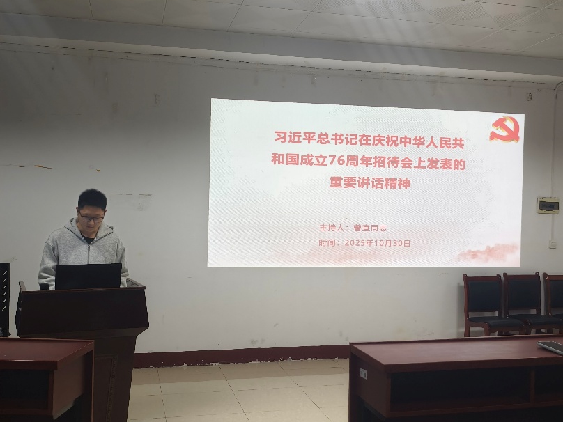 活动伊始,曾宜同志带领党员们专题学习习近平总书记在庆祝中华人民共和国成立76周年招待会上的重要讲话精神。他围绕讲话中“团结奋斗是中国人民在党的领导下在长期实践中形成的宝贵精神品质”这一核心,结合公共卫生事业发展历程,深入解读了新时代青年党员的使命担当。大家纷纷表示,要将讲话精神转化为学习科研的动力,为保障人民健康贡献青春力量。